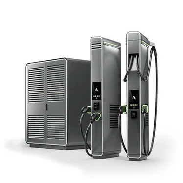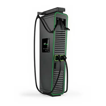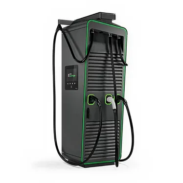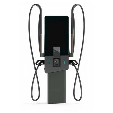 Kompakte DC-Schnellladestation mit zwei Anschlüssen für paralleles Laden.
